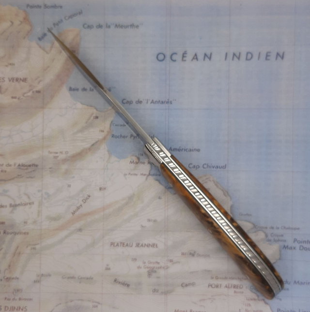Mitre damasteel inox odin's eyes dans la continuité de la lame