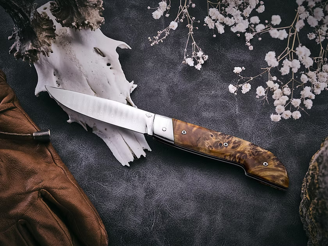 Manche : loupe de peuplier stabilisé avec Intercalaires noire